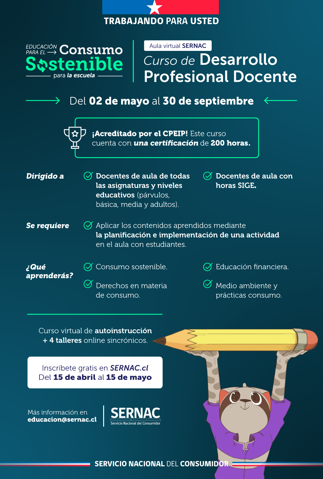 SERNAC inicia proceso de matrículas para curso de desarrollo profesional docente