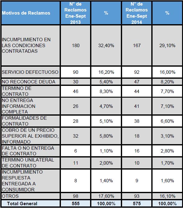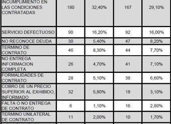 Los principales reclamos contra este mercado apuntan al incumplimiento en las condiciones contratadas (29,1%), servicios defectuosos (16%) o bien, cuando no se reconoce deuda (8,2%).