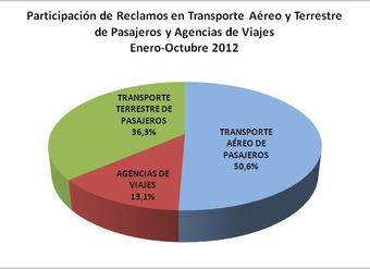 Entre enero y noviembre de 2012, las aerolíneas acogieron el 57,3% de los reclamos que llegaron al SERNAC, esto es, entregaron una propuesta de solución al consumidor. En el caso de las empresas de buses, un 54,4% dio una respuesta positiva, mientras que en las agencias llegó a un 49,4%.