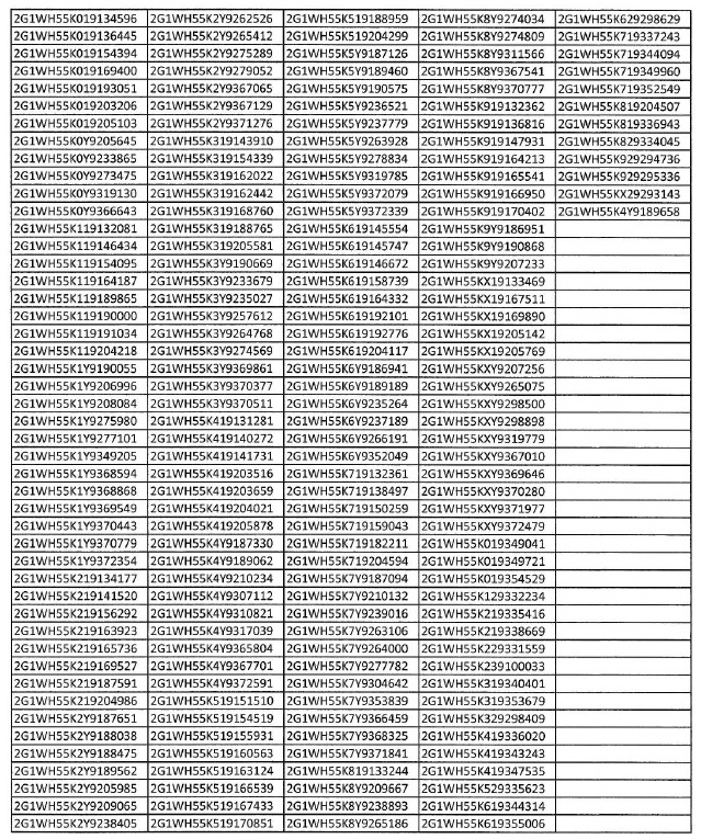 Alerta de seguridad: Vehículos marca CHEVROLET, modelo IMPALA, años 2000-2003