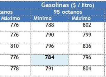 Revise los precios mínimos y máximos por tipo de gasolina y por