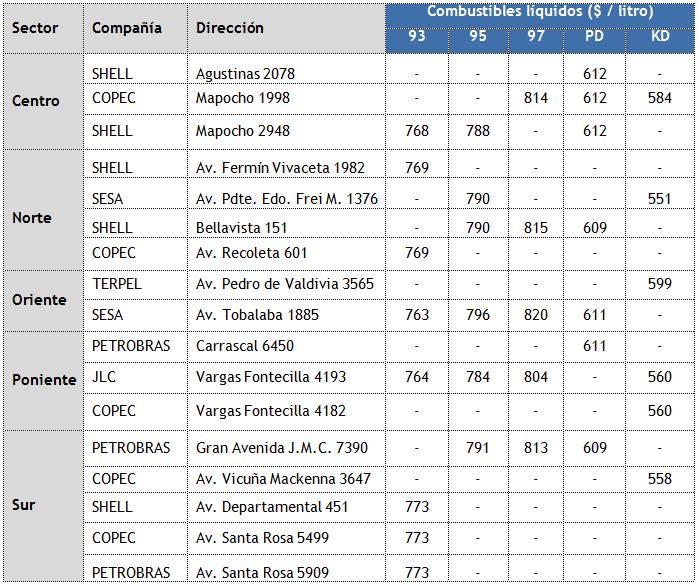 Recurso: Buscador de precios de las bencinas en todo Chile