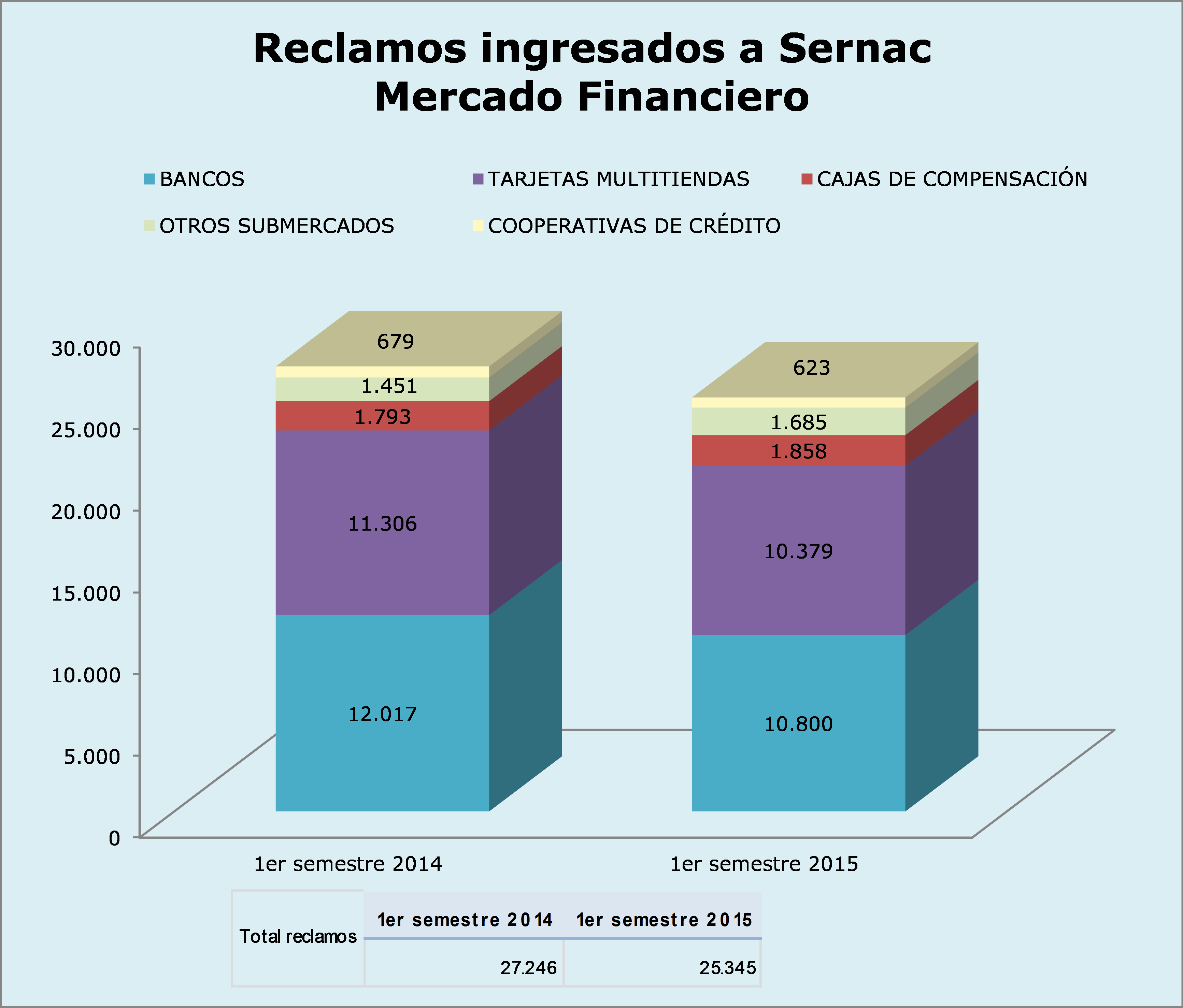 Durante el primer semestre del año 2015, del total de los reclamos recibidos por el SERNAC en contra del mercado financiero, un 43% se concentraron de los casos se concentraron en el sector bancario.